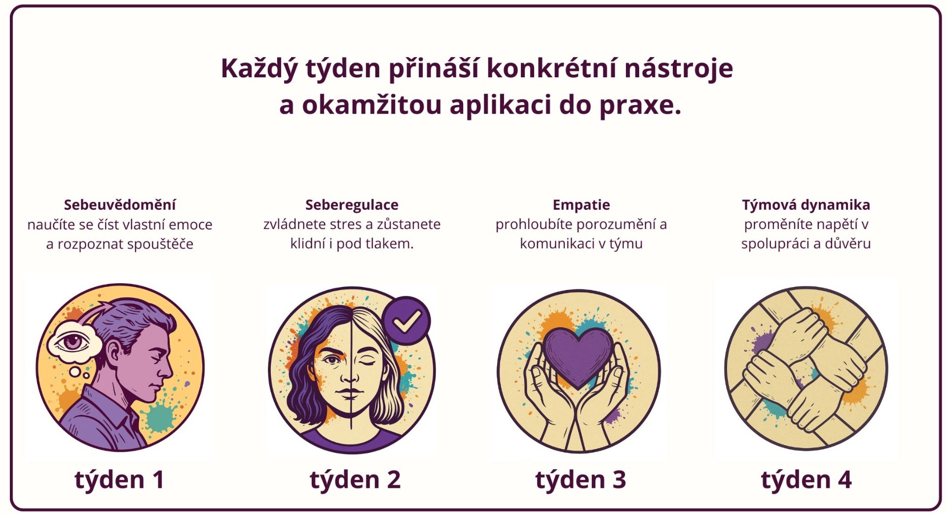 V době, kdy roste tlak na výkon i změnu, se nejvíce počítá lidskost. Emoční inteligence je klíčová dovednost moderních týmů, která pomáhá zvládat stres, konflikty i náročné vztahy s klidem a respektem.